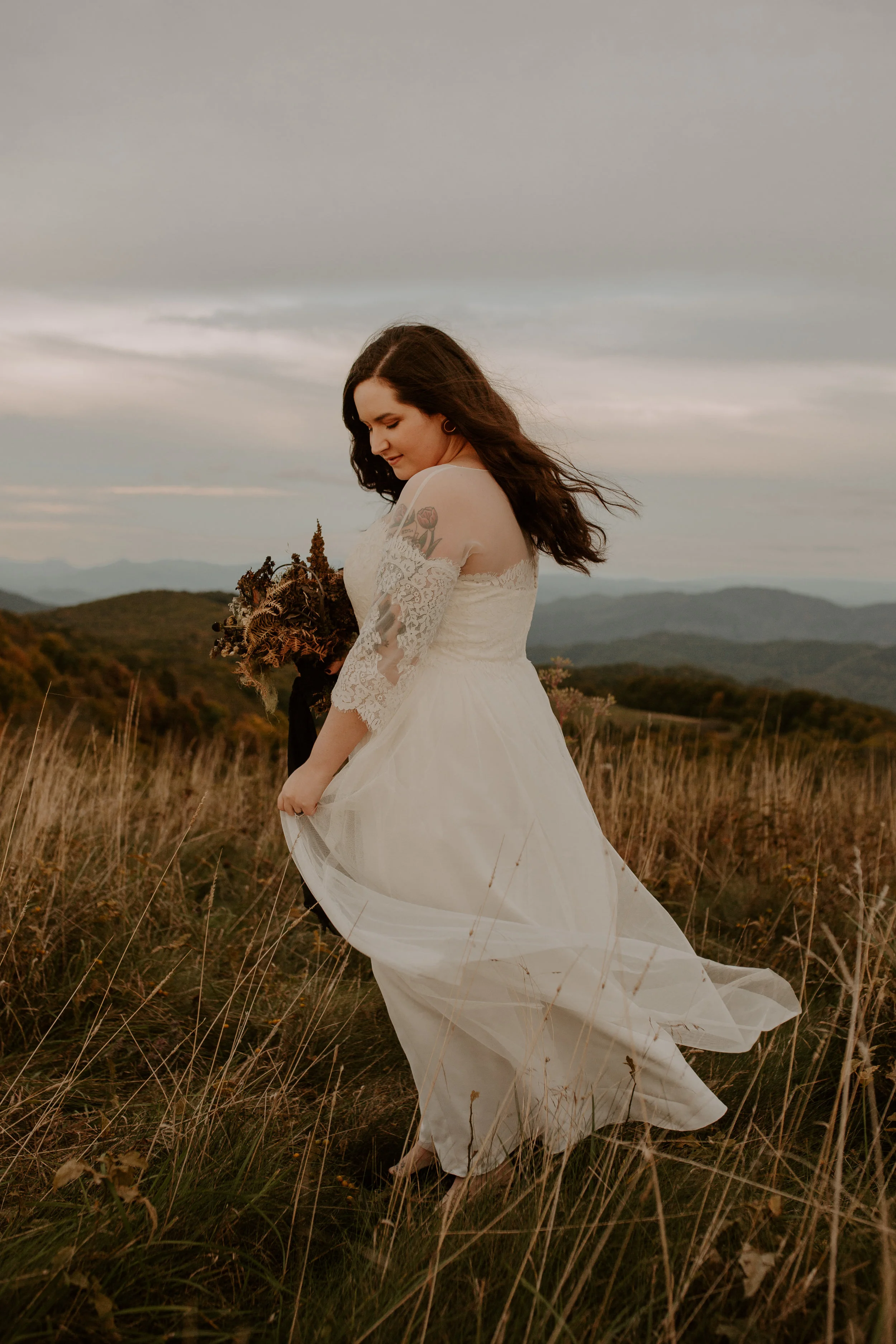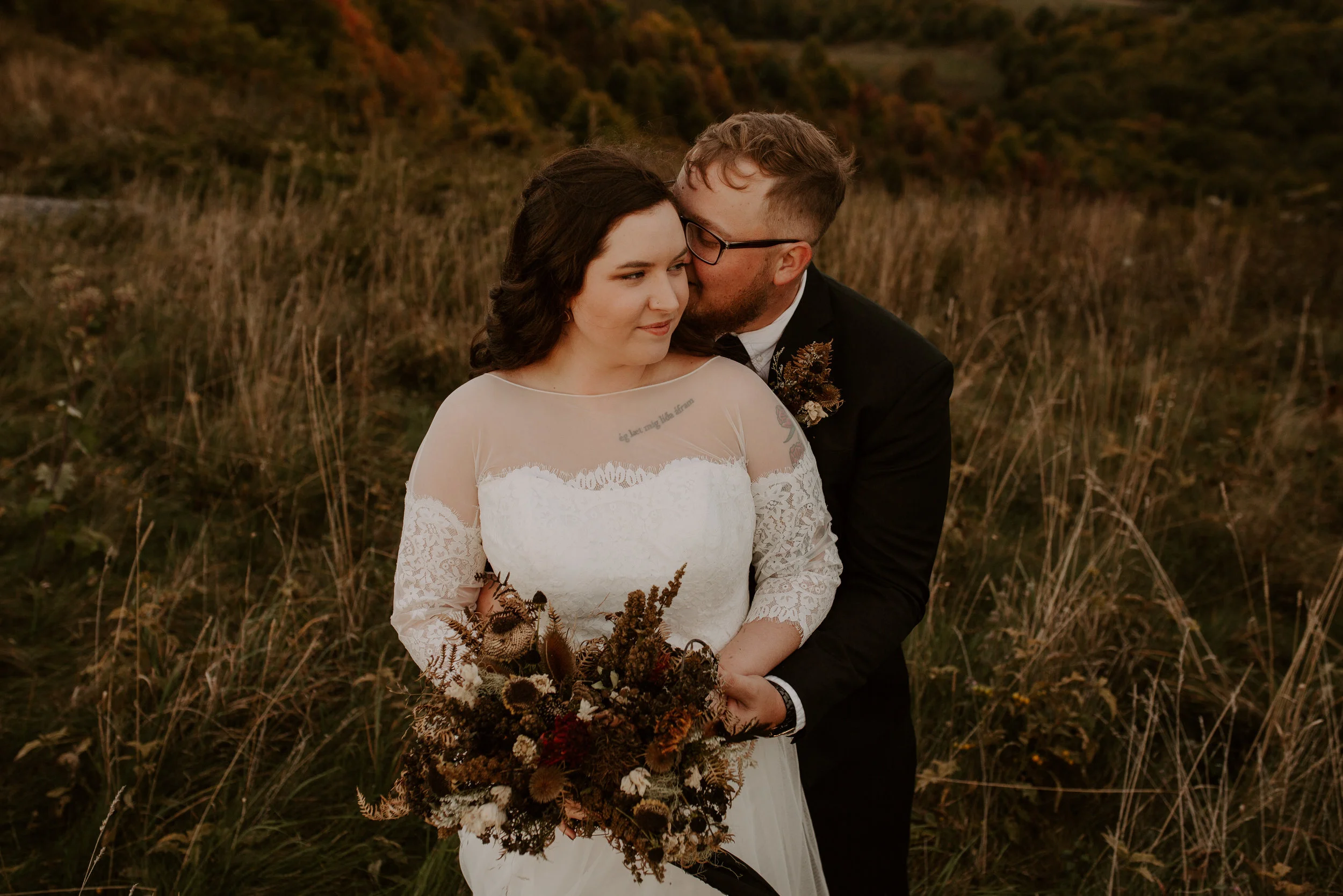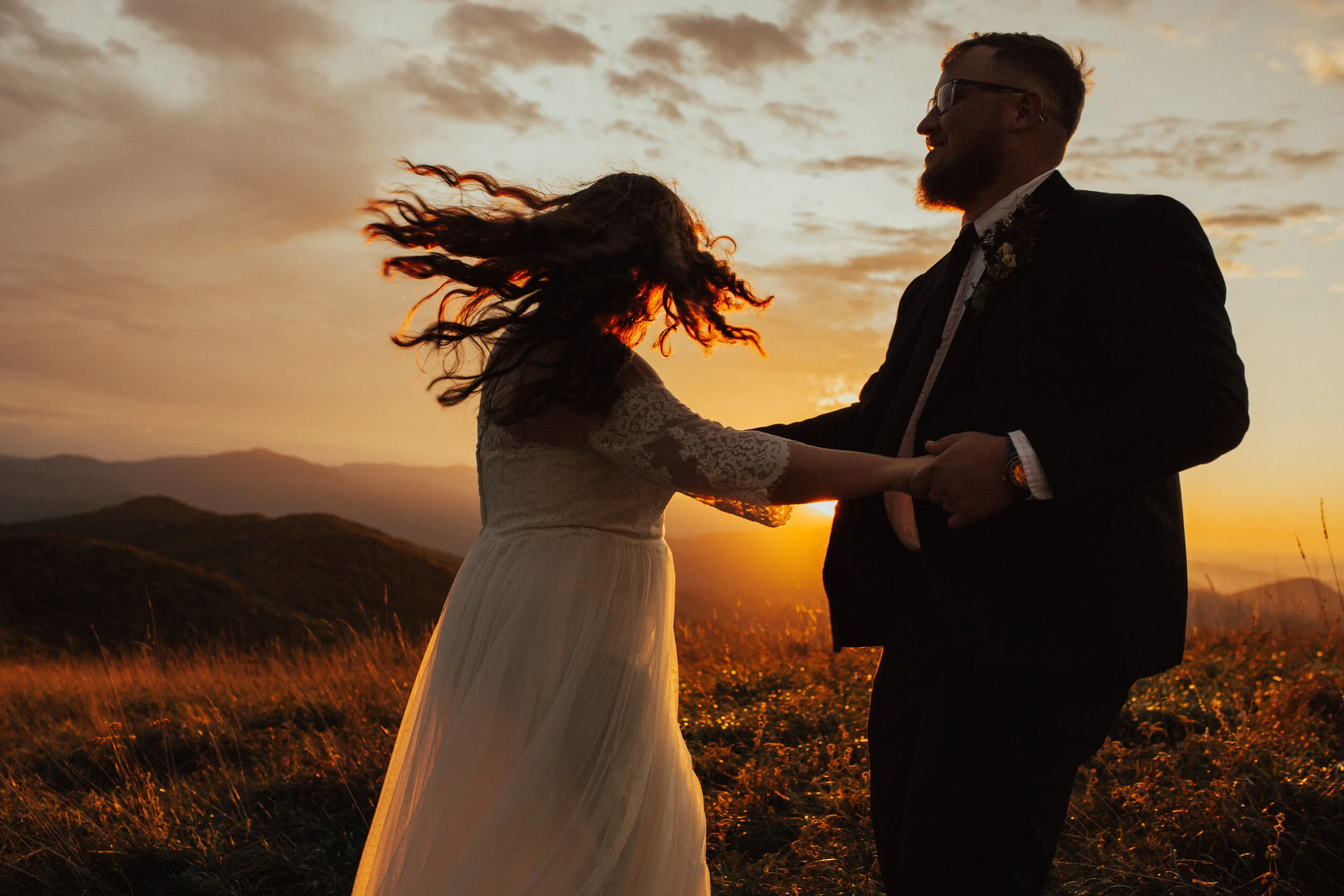 She asked if I had any locations in mind, and clearly I threw out the idea of Max Patch, in North Carolina. Its seriously one of my favorite places ever. They were down. So one Sunday afternoon, we all hiked up to the top, in wedding dress, tux, and all, and photographed their beautiful love story.